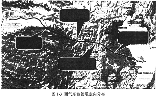 西气东输工程是我国在新世纪启动的最大的建设工程之一,是西部大开发的标志性工程。工程西起新疆塔里木盆地的轮南气田,经甘肃、宁夏,进入陕西,在靖边与长庆气田连接,经山西、河南、安徽、江苏、浙江,东抵上海。