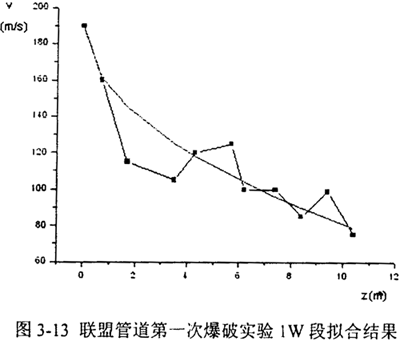 对于图3-9中的lW段,取v0=200m/s,Lr=35m,拟合结果如图3-13所示: