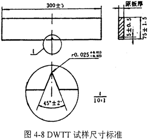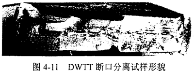 图4-8和图4-9分别表示DWTT的试样标准和断口形貌。