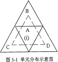 以二维情况为例,计算图5-1中A点梯度可选C→B→D→C作为积分路径,但为了保证积分的精度,最好使积分路径构成的封闭体形心与计算点重合,或至少比较接近。
