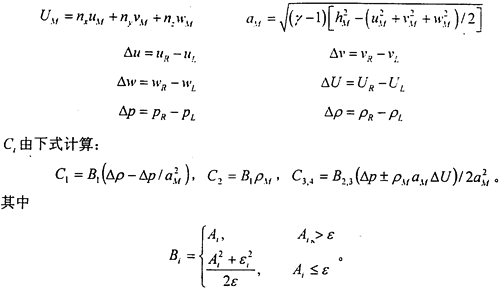 便可方便的得出一阶精度格式。显然,一阶精度格式对于粘流的计算来说是没有应用价值的。为了构造高精度格式,必须寻求确定LR的高精度方法。对于二阶精度格式,LR的表达式可由下式确定: