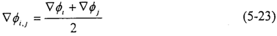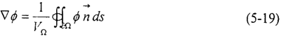 在(5-18)式,我们用到了原始变量的梯度(▽i和(▽j。在非结构网格中,物理量的梯度可以由高斯积分公式求得。令ф代表任一变量,则