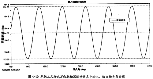通过以上的结果分析,可以确定的说,单联三叉杆式万向联轴器的理论分析结果和其计算机仿真的结果可以相互验证,这在一定的程度上说明以前的理论分析是正确的。