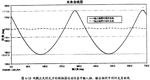 输入轴、输出轴同双联三叉杆(又称中间杆)夹角曲线(如图4-19);