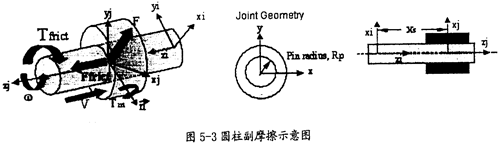 在双联三叉杆式万向联轴器的模型中,相互运动的构件较多,各个构件之间的活动接触面都会产生摩擦力的作用,不同的运动副形式,摩擦产生的来源也不一样,在施加摩擦时要根据不同的摩擦来源考虑各因素的影响。在本章的分析中,各个运动副间都被加上了摩擦力。由于涉及到了如下四种运动副,现对它们摩擦力施加的考虑因素作如下的陈述:
