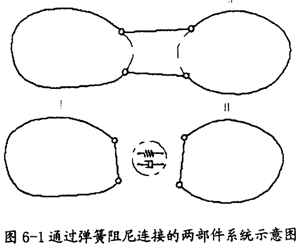 设有部件I和部件Ⅱ,通过弹簧和阻尼构件相连接,如图6-1所示。对于部件I,应用