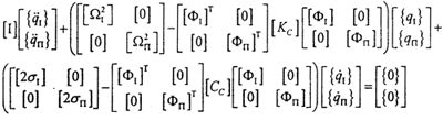 求组合系统的特征值及特征向量,然后可建立组合系统的模态模型。(不难看出,此处组合结构整体的特征值的数目由各部件的模态数来确定,而不是由它们的结构几何坐标数确定的)