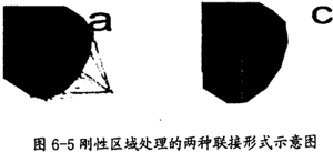 刚性区域的处理是基于小变形理论,通过这种处理,单个构件的自由模态频率会上升,只有通过这种处理可以在ADAMS中进行模态叠加和模态综合,得出系统的固有频率。其处理的方法是根据构件间的不同的运动副连接形式,用点质量单元上的节点(有时物体上自己的节点也可,不一定非要再建立质量单元)和实体上相应的节点进行耦合,形成主节点和从节点关系,构成刚性区域。其连接形式如图6-5,在此图的连接形式中,a图的连接形式可以传递所有载荷形式,是一种推荐的连接方式;c图中主节点仅同单个从节点相连传递的载荷形式有限,不合适选用。