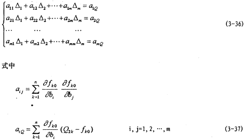 ,并解方程组(3-36)得新的△i,进而得bi。这种过程可以重复进行,直至|△t |的值小到给定的精度为止。