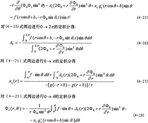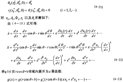 ,t)在rcosθ+b与-rф0sinθ邻域内以ε幂级数展开式代入(4-4)式,由等号两端ε的系数相等得: