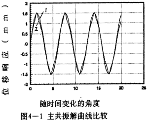 曲线图如图4-1所示。从图中可以看到解析解曲线1和数字仿真解曲线2重合性较好,在振幅与相位上误差都较小。