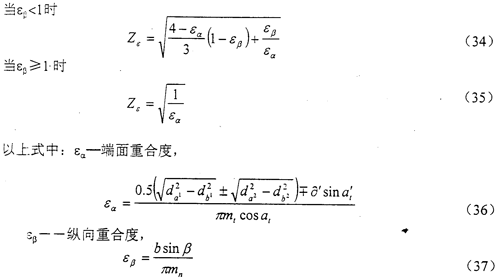 重合度系数Zε是用以考虑重合度对单位齿宽载荷的影响。Zε可由式(33)、(34)、(35)计算得出。
