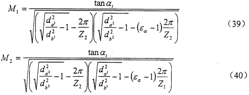 式中da1(da2)、db1(db2)、Z1(Z2)分别为小轮(大轮)的齿顶圆,基圆直径和齿数;αt为端面分度圆啮合角,见式(29),εα为端面重合度,见式(36)。