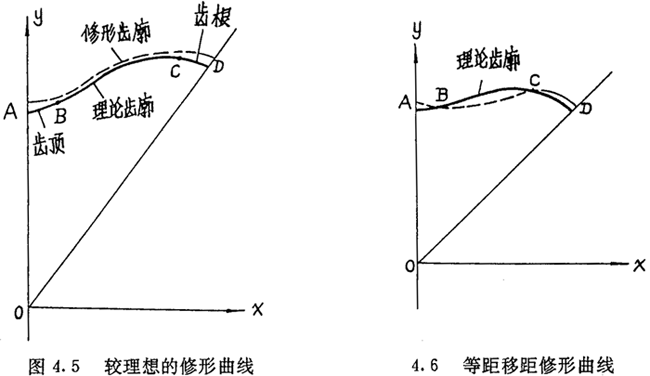 移距修形:给参数l一个增量△1,或给参数Tb一个增量加△Tb,使被加工齿廓在原来理论情况下增加了一定量的进刀深度。