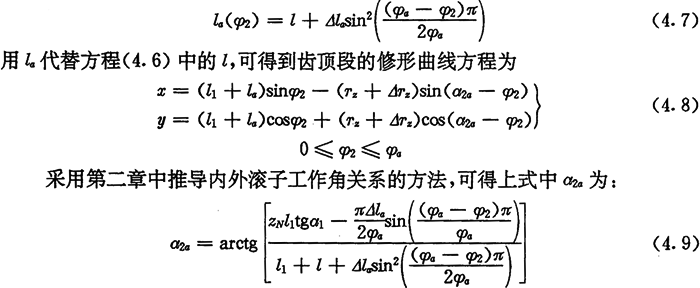上式中l1、a2与φ2的关系仍为式(2.36)、(2.37)及(2.38),因为这些关系式中的Tz为内滚子半径,故不变。中段修形范围是: