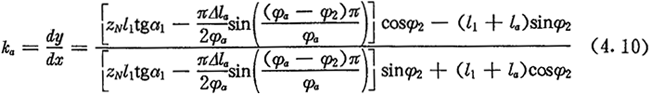 第二,在φ2=φa处,两曲线有相同的切线。设齿顶段修形曲线的切线斜率为ka,则由式(4.8)可得: