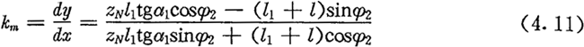 中段修形曲线的切线斜率km可由(4.6)式求得: