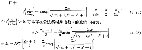经过分析可知,当存在偏距E时,在跨槽数为k的两齿廓上具有公法线的点的条件仍然可用式(4.17)表示,公法线长度为: