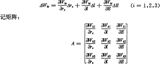假设用下标i表示公法线序号,用△Wki表示第i条公法线实际测量出的值与理论计算出的值的误差,则可得到公法线长度误差方程为: