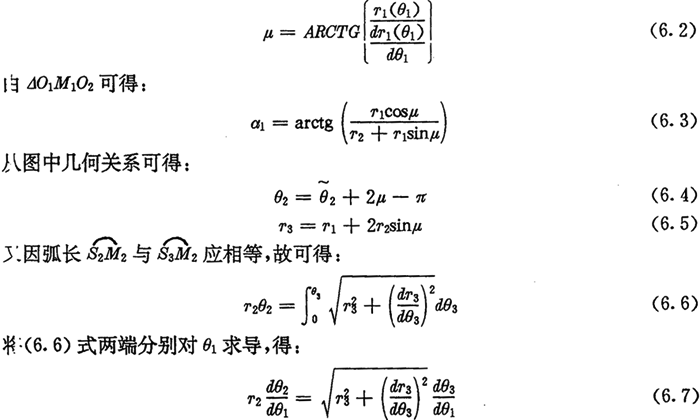 将(6.5)式及(6.9)式联立,便是内齿圈节曲线的方程。同理,若已知内齿圈节曲线方程,仿上可求得太阳轮节曲线。