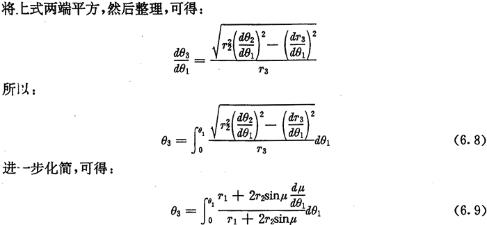 ,所以由(6.2)式可知转动前后在接触点具有相同的μ值。根据(6.4)式,设θ1=θ10时,行星轮的转角有关系式