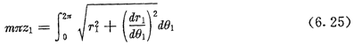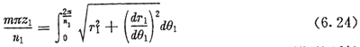 由于每个周期的弧长都是相等的,太阳轮节曲线的总长等于n1个周期的弧长之和,用n1乘以(6.24)两边,可得等分条件的另一种表达形式: