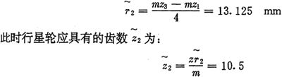 上式中z2为行星轮的齿数,显然内齿圈齿数z3为: