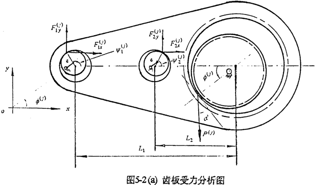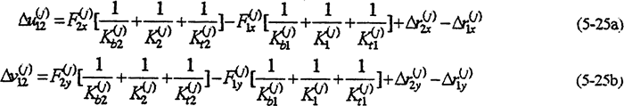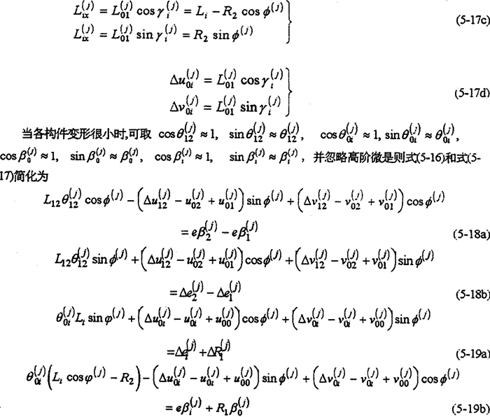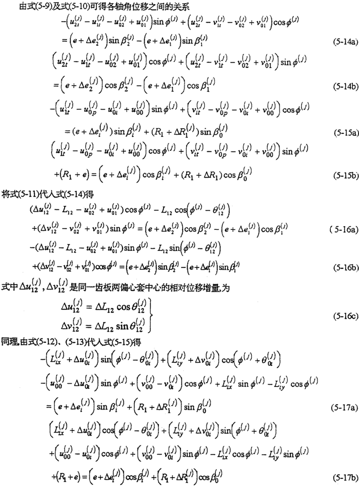 式(5-18)中的△u(j)12,△u(j)12为机构变形后两偏心套中心之间的长度L12产生的增量分量,它包括齿板两高速轴孔之间的相对变