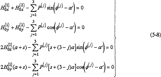 由式(5-18)、(5-19)、(5-22)、(5-23)就构成三环减速器的动力分析补充方程。将它们与三环减速器的动力分析基本方程联解,可以确定出的运动副的动反力及齿板、轴等的变形角位移,随转角(或时间)的函数关系。各齿板、轴的角位移与转角φ的关系可表示成: