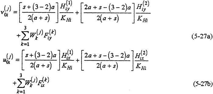 式(5-27)及式(5-28)中s是两则齿板靠近箱体的距离,a是齿板之间的距离。取箱体轴承的刚度KH0=KHi=1379×105N/mm。偏心套的径向变形△e(j)i以及外齿轮的径向变形△R(j)1均很微小,故一般忽略不计。