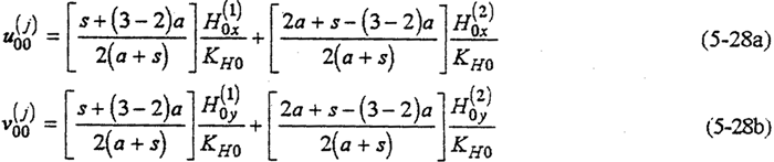 低速轴轴心位移u(j)00,V(j)00也是由箱体轴承变形及低速轴弯曲变形组成。但由于低速轴的法向尺寸较大、弯曲变形很小,故可忽
