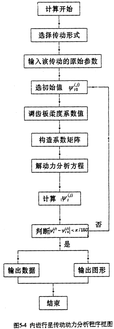 在不计各种误差且机构变形很小时,将以上参数代入三环减速器的非线性动力分析方程式(5-1)~(5-8)、(5-18)、(5-19)、(5-22)~(5-23)等方程,在计算机上求解,就可求得三环减速器各载荷随工况角φ的变化规5-4为计算程图。