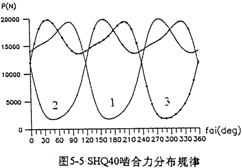 SHQ40型三环减速器的啮合力随φ的变化规律如图5-5所录。由图可以看出啮合力的以下规律: