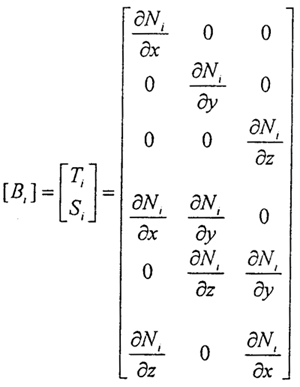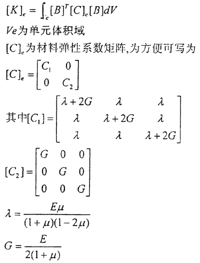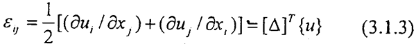[△]为(3.1.3)中微分算子组成的矩阵,[B]为应变、位移关系矩阵,由总位能原理得: