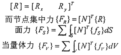 其中[K]为整体刚度阵,右边第一、二、三、四项分别为作用于节点上的当量体力、表面力、初应力和节点集中力,由此静态有限元平衡方程是个系数高度稀疏的大型联立方程,一旦解得位移{q},就可运用公式求得体内各节点的位移,应变和应力。