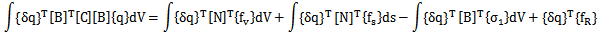 对{δq}的任何分量,总位能原理总能成立,所以在整个域中对所有单元求和,有