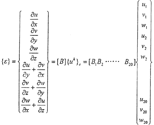 代入式(3.1.3)由此推出应变与节点位移关系: