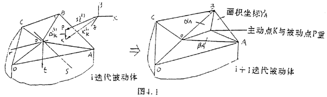 式中△up(i+1), △qk(i+1)表示第i+1迭代步P点及R点位移增量,由式(4.1.11)(4.1.12)得
