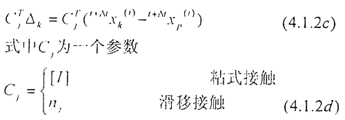 (1)粘式:两物体接触的点无相对运动,变形前后接触点的局部坐标值相同。