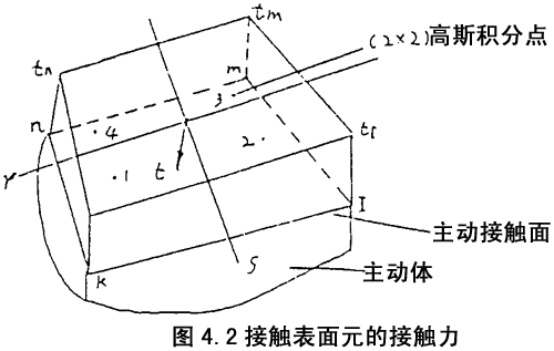式中nj表示与k主动接触节点相接触的被动接触面第j个单元的单位法线矢量将上式代入(4.1.9) ,并利用下式