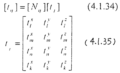 矩阵内项表示分布力在单元角点l,m,n,k上沿x,y ,z的分量。对于一个单元有