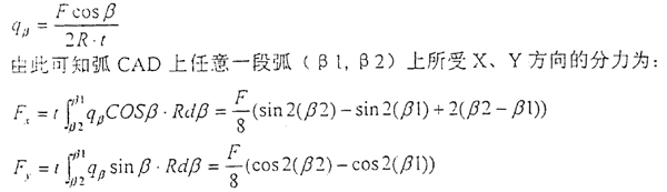 力F的主方向是沿着切线方向,它通过主螺栓作用在叠片螺孔内侧弧CAD上,并按余弦规律分布,这样可将表面力等效到相应的节点上,设A为内圈上一节点<AOX=β如图(a ),