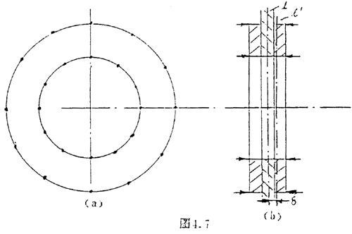 需要说明的是由于从动螺栓变形时,靠近主动法兰盘的叠片的螺栓孔所受的压力最大,所以最危险,如果将法兰盘总的质量为M,节点数为n ,则每个节点需加的质量m为: