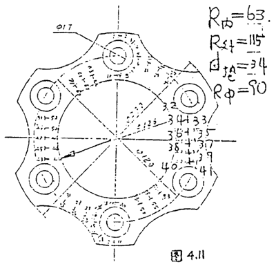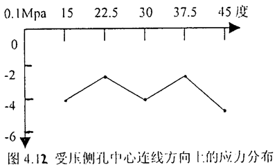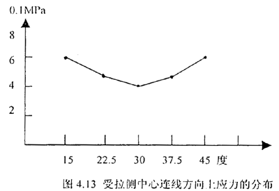 在叠片受拉侧沿两螺栓孔中心连线的方向上,应力的计算值如图4.12所示: