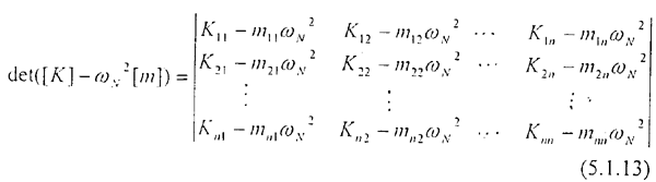 Δ(ωN2)=det[K] - ωN2[m]=0                  (5.1.12)