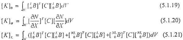 对式5.1.18,我们将等号左端三个矩阵的各用[K]T表示,称切线刚度阵,它表示了载荷增量与位移增量之间的关系。
