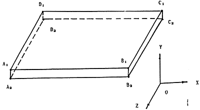 底板上上表面四个角点A1、B1、C1、D1和下表面四个角点A2、B2、C2、D2沿x向、y向和z向的平移自由度为零,旋转自由度任意。如图3-10所示。