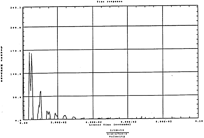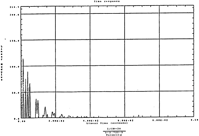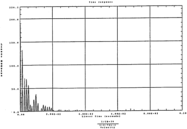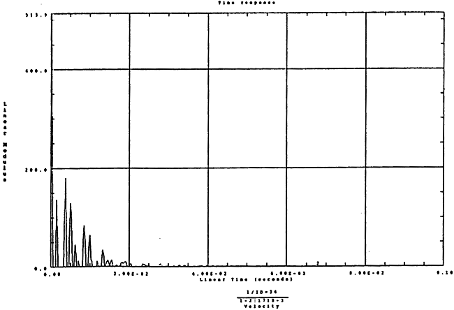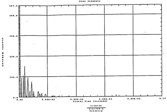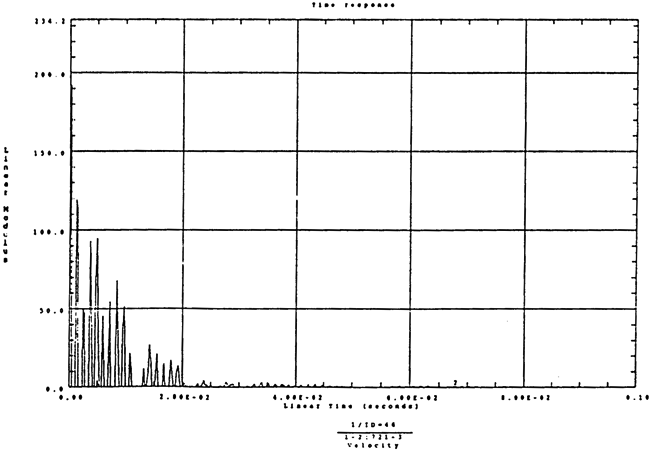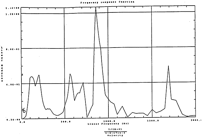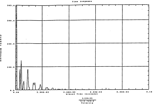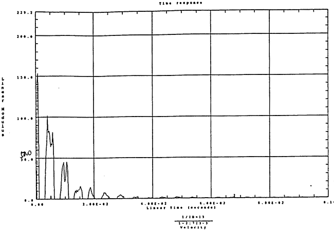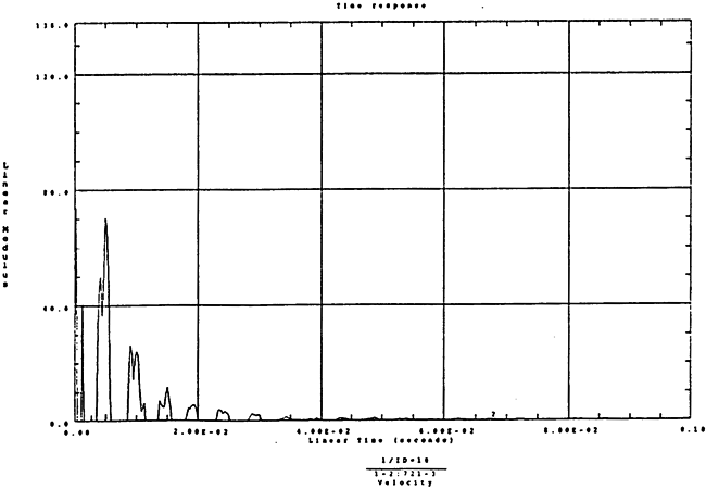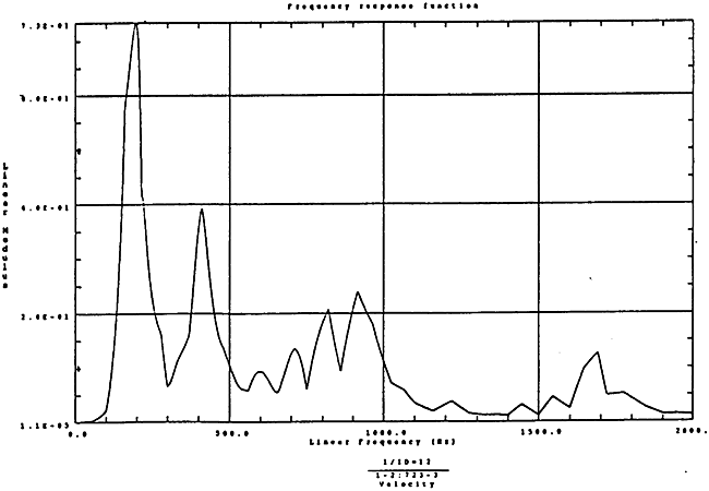 在如图4-14的1000rm-400kgm工况下的载荷谱的激励作用下,SHQ40振动系统测点2、5、8Z向的振动速度的幅值函数如图5-19、图5-20和图5-21所录,图5-22、图5-23和图5-24为其相应的时域皮形。振动速度的预估值与试验的实测值(如表6-13)对比见表5-1所示的工况四。