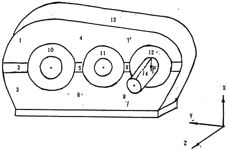 沿X向敲击试件SHQ40上输入轴上的14点并记录测点12的响应信号,用于分析计算。