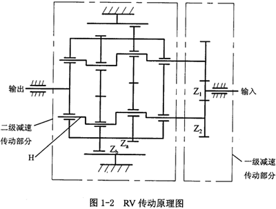 在K-H-V型行星齿轮传动基础上,发展起来的RV传动和双曲柄式少齿差行星传动机构在工程上得到了较好地应用。图1-2所示为RV传动原理图。